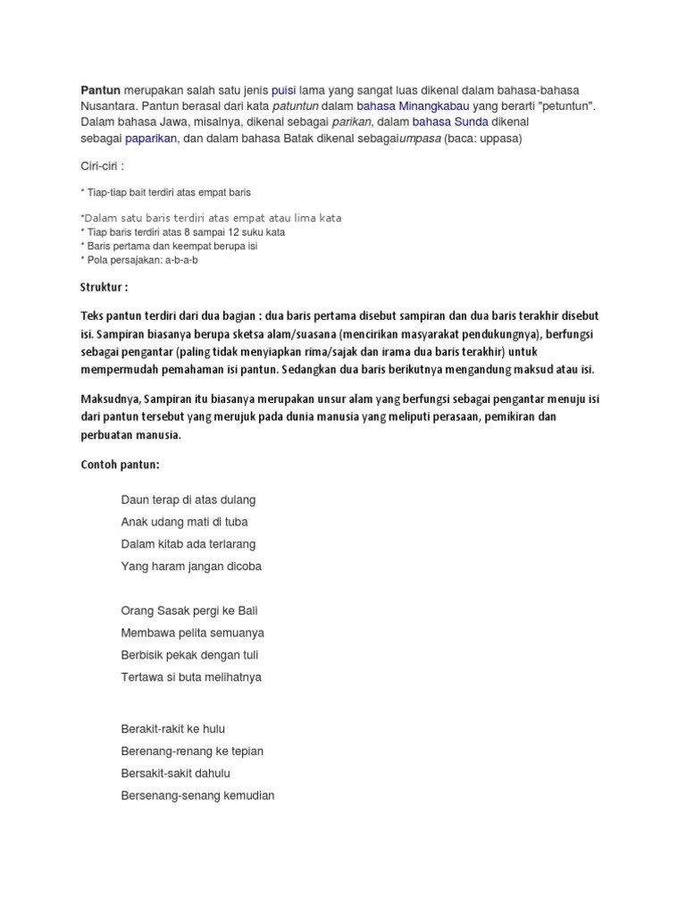 Batur mah make calana kuring mah kabaya wae baturmah jalma kaya kuringmah sangsara wae. Seungit kembang sumarsana hawa angin ngadalingding nu lai kieu rasana nandang nyeri tanpa tanding. Ada juga paparikan yang mindoan wekas, yaitu yang samanya bukan suara vokal, melainkan kata beberapa contoh dibawah ini: Baju hideung kancing tangan, di kaput ku merang awi. · silih asih leuleupeutan leuleumeungan, ngarah kékéjoanana.